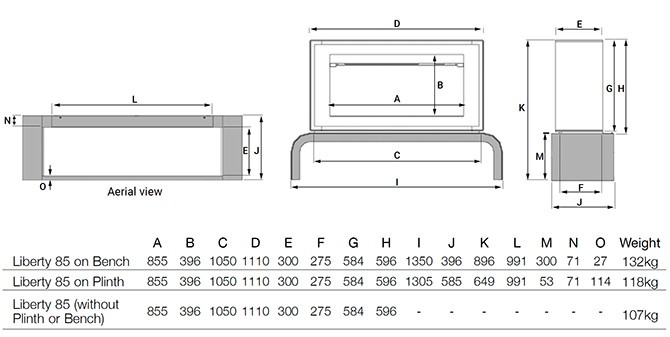Offered with the Liberty Bench or Plinth in a choice of black or white finish. This stunning electric stove is also compatible with Gazco's Riva Bench in low or high proportions from 120 width upwards. Alternatively, you may wish install the Liberty on to your own custom plinth.