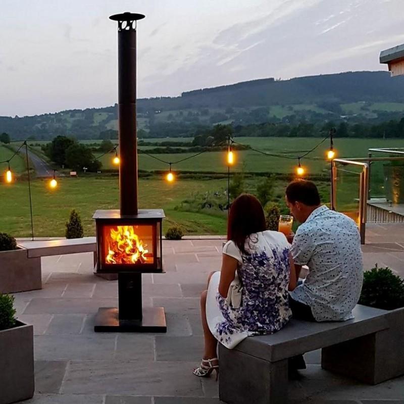 The below outdoor woodburning stove allows you to view the beautiful flames from all 4 sides and is designed, assembled and manufactured here in the UK. Click here for more info