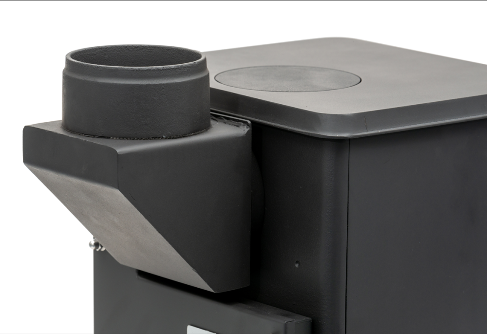 The rear flue wedge frees up the top of your small wood stove, providing ample space for boiling water in a stovetop kettle or cooking. Crafted from solid cast iron, this component allows your flue pipes to be positioned 50mm closer to the back of the stove compared to a traditional 90-degree T and cap/rear exit kit.